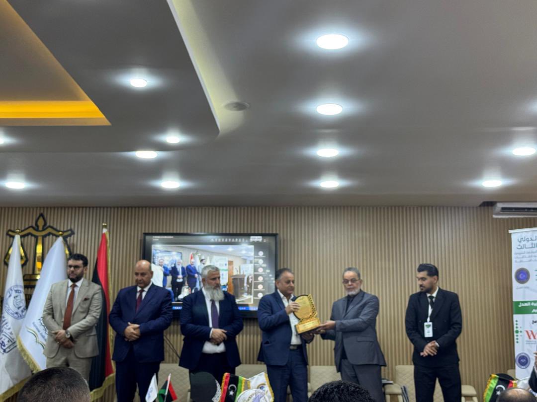 وفي ختام فعاليات اليوم الأول للمؤتمر اشرف عناية السيد المحترم/ مدير عام المعهد العالي للقضاء على توزيع دروع الشكر والتقدير لداعمي وممولي المؤتمر وفي مقدمتهم المركز القومي للبحوث والدراسات العلمية والمركز الوطني لعلاج وتأهيل المدمنين ومركز المعلومات والتوثيق بوزارة الداخلية ومؤسسة الجيش الليبي وجهات مدنية أخرى.