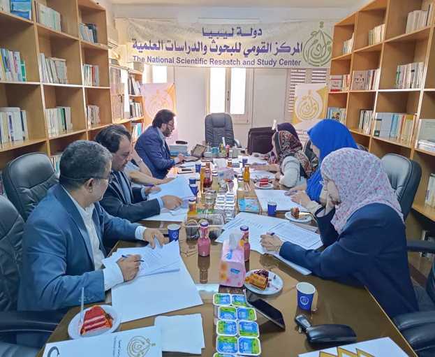 برئاسة السيد/ د. طارق رمضان زنبو (مدير المركز القومي للبحوث والدراسات العلمية، رئيس اللجنة العلمية بالمركز)، وحضور السادة رئيسي الهيئة الاستشارية وهيئة التحرير والاعضاء