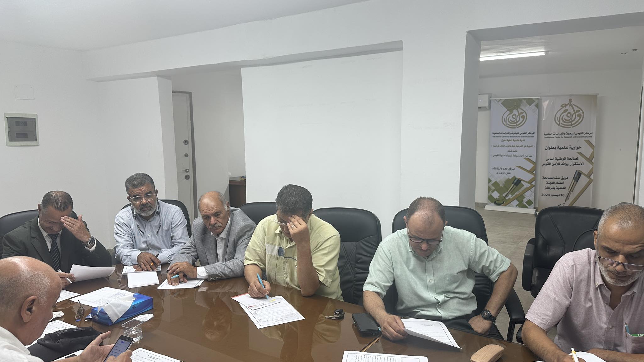 بدعوة من سعادة السيد/ دكتور. طارق زنبو (مدير المركز القومي للبحوث والدراسات العلمية ورئيس اللجنة العلمية بالمركز)، انعقد مساء اليوم الأربعاء الموافق 3/9/2025 بمقر ديوان المركز الاجتماع الدوري للجنة العلمية بالمركز ، حيث ترأس الاجتماع سعادة السيد/ مدير المركز ورئيس اللجنة العلمية (دكتور. طارق زنبو)، وبحضور عضو ومقرر اللجنة العلمية والاعضاء المحترمون، ورؤساء الأقسام العلمية بالمركز، حيث تم في الاجتماع عرض محضر الاجتماع السابق واعتماده من اللجنة، كما نوقش عديد الملفات السياسية والاقتصادية والاجتماعية والأمنية وتكليف الاعضاء لتناولها بالدراسة والتحليل والتقييم المعمق واستخلاص مؤشرات استشرافية حولها وإعداد ورقات عمل بشأنها لتسهم في دعم قرارات قيادات الدولة الليبية وتهيئ قواعد رسم السياسيات الليبية المستقبلية ومعالجة التشوهات الحالية في مختلف المجالات والاصعدة، كما تم مناقشة ترتيبات إصدار العدد (20) ديسمبر 2025 لمجلة الجديد للعلوم الانسانية التي تصدر دوريا عن المركز (مجلة علمية محكمة) وتذليل الصعاب التي تعترض قيام هيئة تحرير المجلة والهيئة الاستشارية بمهامهم على أكمل وجه، كما تم في الاجتماع استعراض ومناقشة نتائج اعمال فرق العمل البحثية ومتابعي الساحات الإقليمية والدولية بالمركز، كما نوقش في الاجتماع ترتيبات عقد ورشتي عمل حول الاولى تتناول ملف التوطين والثانية ملف التنمية وتنويع الاقتصاد الليبي، أيضا استعرض الحاضرون مشاريع طباعة عدد من المؤلفات المقدمة للنشر بالمركز وتمت الموافقة على طباعة ونشر بعضها وإحالة المؤلفات التي تم اعتمادها للجنة المطبوعات والنشر بالمركز للبدء في إجراءات تقييمها وتحكيمها توطئ للطباعة والنشر. كما تم في الاجتماع مناقشة تطوير الهيكلية التنظيمية للمركز بما يواكب الأحداث المتسارعة والتطور المعرفي والتقني في مجال البحوث والدراسات العلمية وبما ينسجم مع معايير ضمان الجودة والاعتماد وتقييم الأداء المعمول بها محليا وإقليميا ودوليا والارتقاء بمستوى أداء وفعالية المركز ويخدم رسالته في المجتمع، وبما يخدم أهداف بناء الدولة الليبية بمؤسسات تمثل الإرادة الوطنية العامة والرقابة الدستورية على سلطات الدولة التنفيذية والتشريعية والقضائية وتخطي الأزمات المتوالية التي أنتجتها المراحل الانتقالية في مسيرة التغيير وبناء دولة القانون والحريات والمؤسسات.